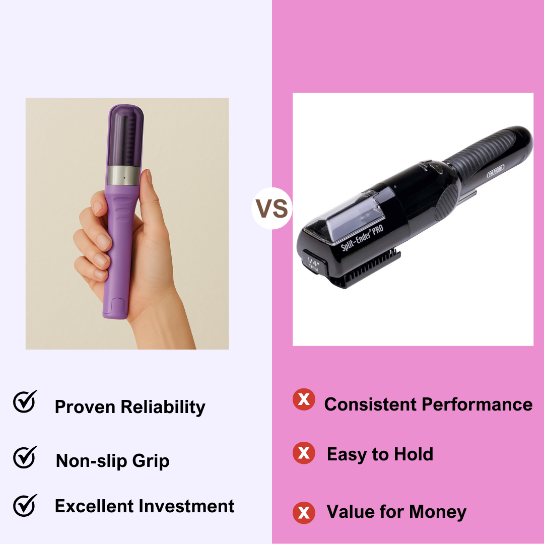 We engineered CortarPro™ with professional-grade blades and an advanced trimming system to target split ends only—leaving the rest of your hair smooth, healthy, and untouched. -